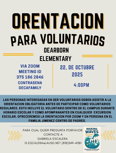 Volunteer Orientation #2 https://lausd.zoom.us/j/3751862846?pwd=gg5Xl3DszC8wXQgzYEJewpn5GWC9qn.1&omn=81530911534